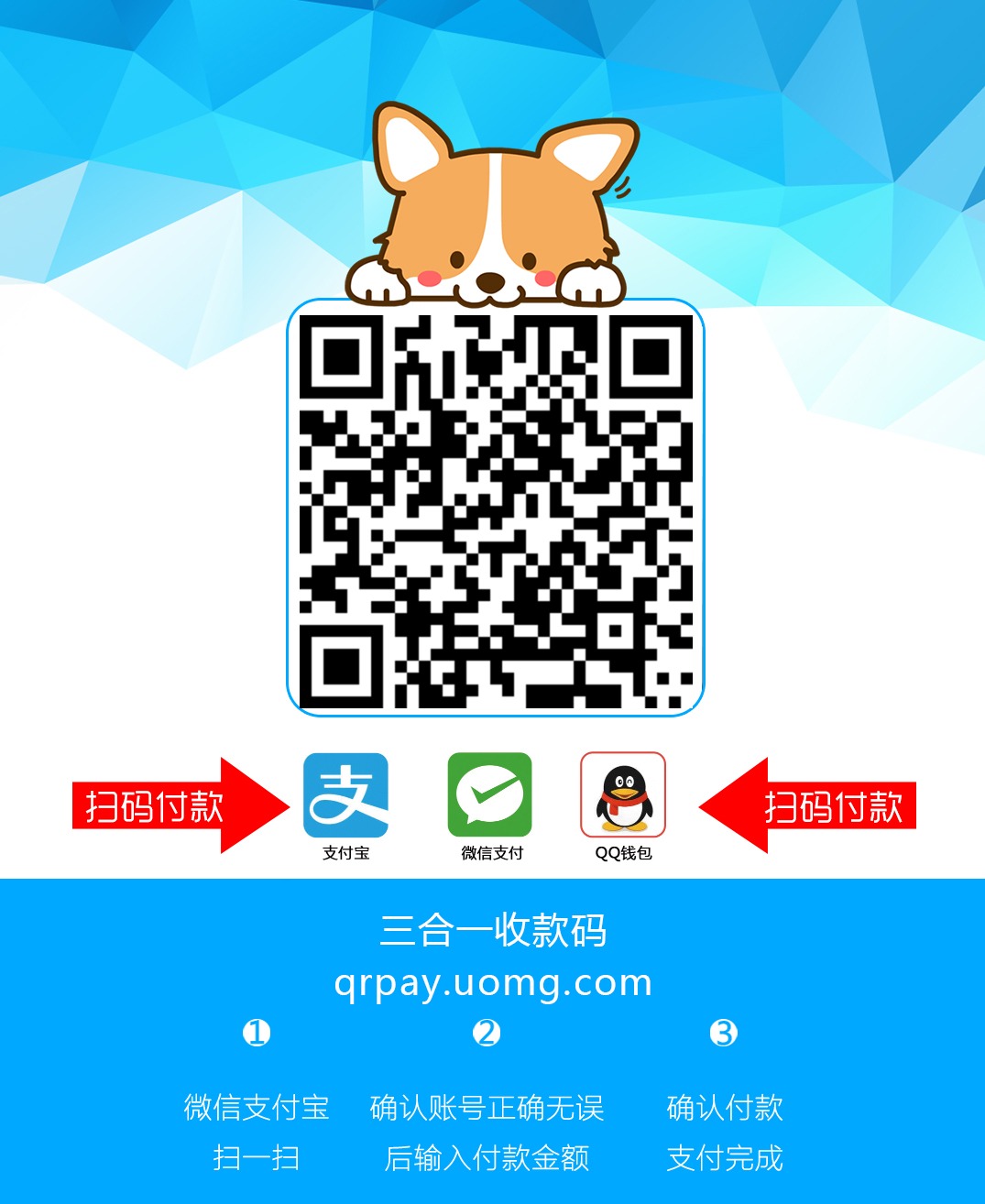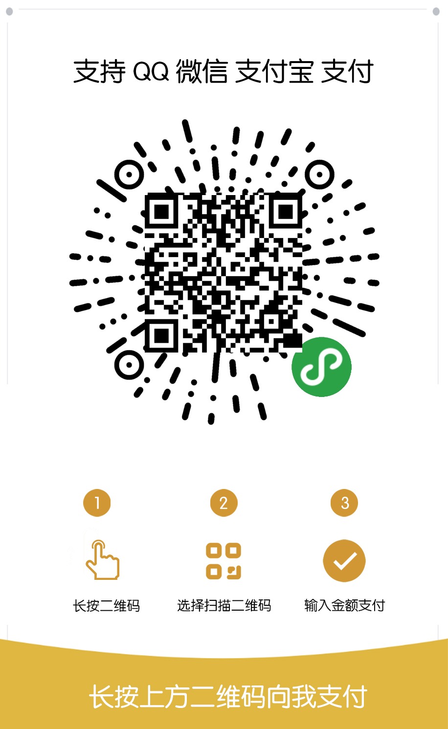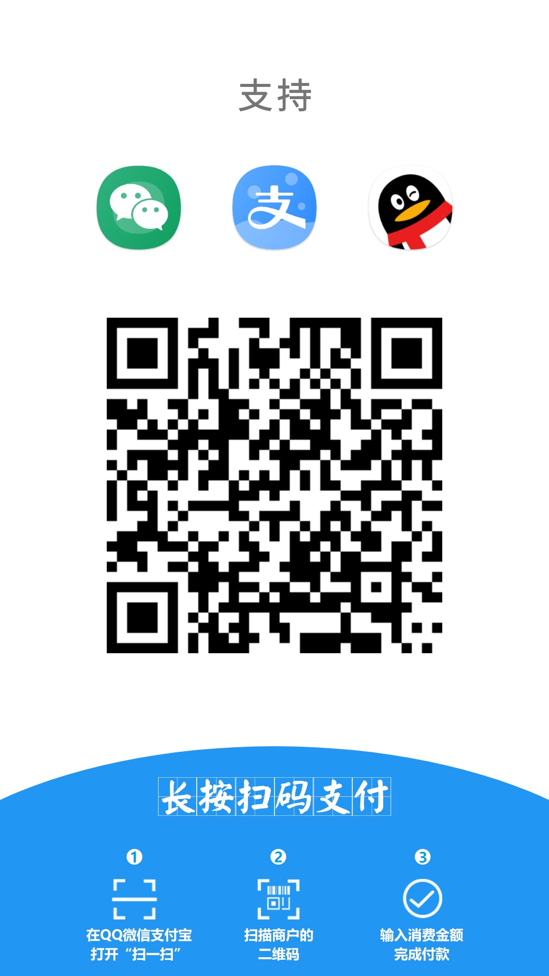 4.为什么微信、QQ扫码后还需要长按识别?微信、QQ接口未开放权限,无法直接调起微信、QQ转账页面,所以需要长按识二维码别进行转账。(给您带来不便还请谅解)目前支付宝接口已开放权限。可以直接扫码付款。